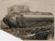 In September 1917 Armstrong, Whitworth & Co. in Newcastle-upon-Tyne began constructing two prototypes of a pure transport vehicle that would become the Mark IX, which could also serve as a supply tank. The prototypes were approved the following year, at a time when it had become clear that a possible alternative, the stretched Mark V* tank, was unsuited for infantry transport. Two hundred Mark IXs were ordered from the tractor manufacturer Marshall, Sons & Co. of Gainsborough, Lincolnshire but by the end of the Great War only three had been finished, out of a total ultimate production run of thirty-four.[3] A specially-designed sledge developed by the tank workshop in France, that allowed an additional 10 long tons (10 t) of stores to be hauled, was tried.