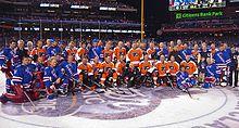 Messier also remains active in the City of New York, with Messier playing for the New York Rangers at the 2012 NHL Winter Classic Alumni Game in Philadelphia between the New York Rangers and the Philadelphia Flyers on December 31, 2011. Messier had 1 assist during the game, which was won 3-1 by Philadelphia.[49] Messier also ran in the New York City Marathon on November 6, 2011, finishing with a time of 4:14:21. Messier, alongside Sarah Hughes, is also involved in the construction of the Kingsbridge National Ice Center, a $250 million USD,[50] 795,000 square foot redevelopment of the Kingsbridge Armory in the Bronx into a world's-largest indoor ice facility, containing nine ice rinks.[51]
