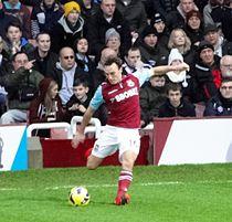 Mark James Noble (born 8 May 1987) is an English professional footballer who plays as a central midfielder and is captain of Premier League club West Ham United. His loyalty and services to the club have earned him the nickname "Mr. West Ham".[4][5] He has played almost all of his youth and first team football for the club apart from two short loan spells at Hull City and Ipswich Town in 2006.