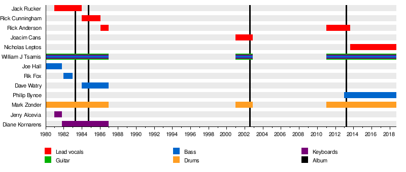 | Past members | Dave Watry Diane Kornarens Jack Rucker Rick Cunningham Joacim Cans Rick Anderson |