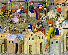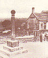 A market cross, or in Scots, a mercat cross, is a structure used to mark a market square in market towns, where historically the right to hold a regular market or fair was granted by the monarch, a bishop or a baron. Market crosses were originally from the distinctive tradition in Early Medieval Insular art of free-standing stone standing or high crosses, often elaborately carved, which goes back to the 7th century. Market crosses can be found in many market towns in Britain. British emigrants often installed such crosses in their new cities, and several can be found in Canada and Australia.