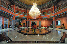 In the early 16th century, Marrakesh again became the capital of the kingdom, after a period when it was the seat of the Hintata emirs. It quickly reestablished its status, especially during the reigns of the Saadian sultans Abu Abdallah al-Qaim and Ahmad al-Mansur. Thanks to the wealth amassed by the Sultans, Marrakesh was embellished with sumptuous palaces while its ruined monuments were restored. El Badi Palace, built by Ahmad al-Mansur in 1578, was a replica of the Alhambra Palace, made with costly and rare materials including marble from Italy, gold dust from Sudan, porphyry from India and jade from China. The palace was intended primarily for hosting lavish receptions for ambassadors from Spain, England, and the Ottoman Empire, showcasing Saadian Morocco as a nation whose power and influence reached as far as the borders of Niger and Mali.[33] Under the Saadian dynasty, Marrakesh regained its former position as a point of contact for caravan routes from the Maghreb, the Mediterranean and sub-Saharan Africa.