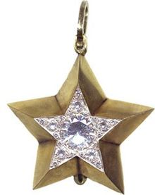 The marshal's star (Russian: маршальская звезда) is an additional badge of rank worn by marshals of the armed forces of the Soviet Union, and subsequently the Russian Federation. The armed forces of the former Soviet Union and the Russian Federation have two such insignia for higher military ranks, both in the form of a five-pointed star of gold and platinum with diamonds. They are worn around neck when in parade uniform (originally under the collar of the parade tunic, since 1955 on top of the necktie). There are two different sizes of star. Officially their names have changed, depending on what ranks received the right to wear them, and are known as the large marshal's star and the small marshal's star.