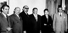 On 21 December 1941, the Partisans created the First Proletarian Brigade (commanded by Koča Popović) and on 1 March 1942, Tito created the Second Proletarian Brigade.[121] In liberated territories, the Partisans organised People's Committees to act as civilian government. The Anti-Fascist Council of National Liberation of Yugoslavia (AVNOJ) convened in Bihać on 26–27 November 1942 and in Jajce on 29 November 1943.[122] In the two sessions, the resistance representatives established the basis for post-war organisation of the country, deciding on a federation of the Yugoslav nations. In Jajce, a 67-member "presidency" was elected and established a nine-member National Committee of Liberation (five communist members) as a de facto provisional government.[123] Tito was named President of the National Committee of Liberation.[124]