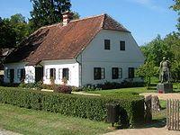 Josip Broz was born on 7 May 1892 in Kumrovec, a village in the northern Croatian region of Hrvatsko Zagorje. At the time it was part of the Kingdom of Croatia-Slavonia within the Austro-Hungarian Empire.[a][b] He was the seventh or eighth child of Franjo Broz (1860–1936) and Marija née Javeršek (1864–1918). His parents had already had a number of children die in early infancy.[15][16] Broz was christened and raised as a Roman Catholic.[17] His father, Franjo, was a Croat whose family had lived in the village for three centuries, while his mother Marija, was a Slovene from the village of Podsreda. The villages were 16 kilometres (10 mi) apart, and his parents had married on 21 January 1881. Franjo Broz had inherited a 4.0-hectare (10-acre) estate and a good house, but he was unable to make a success of farming. Josip spent a significant proportion of his pre-school years living with his maternal grandparents at Podsreda, where he became a favourite of his grandfather Martin Javeršek. By the time he returned to Kumrovec to begin school, he spoke Slovene better than Croatian,[18][19] and had learned to play the piano.[20] Despite his "mixed parentage", Broz identified as a Croat like his father and neighbours.[21][22][23]