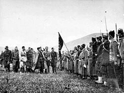 Despite conflicts with the rival monarchic Chetnik movement, Tito's Partisans succeeded in liberating territory, notably the "Republic of Užice". During this period, Tito held talks with Chetnik leader Draža Mihailović on 19 September and 27 October 1941.[119] It is said that Tito ordered his forces to assist escaping Jews, and that more than 2,000 Jews fought directly for Tito.[120]