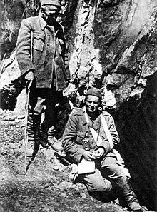 Soon after the outbreak of World War I in 1914, the 25th Croatian Home Guard Regiment marched toward the Serbian border. Broz was arrested for sedition and imprisoned in the Petrovaradin fortress in present-day Novi Sad.[40] Broz later gave conflicting accounts of this arrest, telling one biographer that he had threatened to desert to the Russians, but also claiming that the whole matter arose from a clerical error.[37] A third version was that he had been overheard saying that he hoped the Austro-Hungarian Empire would be defeated.[41] After his acquittal and release,[42] his regiment served briefly on the Serbian Front before being deployed to the Eastern Front in Galicia in early 1915 to fight against Russia.[37] Tito in his own account of his military service did not mention that he participated in the failed Austrian invasion of Serbia, instead giving the misleading impression that he fought only in Galicia, as it would have offended Serbian opinion to know that he fought in 1914 for the Habsburgs against them.[41] On one occasion, the scout platoon he commanded went behind the enemy lines and captured 80 Russian soldiers, bringing them back to their own lines alive. In 1980 it was discovered that he had been recommended for an award for gallantry and initiative in reconnaissance and capturing prisoners.[43] Tito's biographer, Richard West, wrote that Tito actually downplayed his military record as the Austrian Army records showed that he was a brave soldier, which contradicted his later claim to have been opposed to the Habsburg monarchy and his self-portrait of himself as an unwilling conscript fighting in a war he was opposed to.[44] Broz was regarded by his fellow soldiers as kaisertreu ("true to the Emperor").[45]