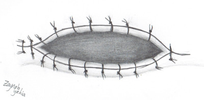 Marsupialization is the surgical technique of cutting a slit into an abscess or cyst and suturing the edges of the slit to form a continuous surface from the exterior surface to the interior surface of the cyst or abscess. Sutured in this fashion, the site remains open and can drain freely. This technique is used to treat a cyst or abscess when a single draining would not be effective and complete removal of the surrounding structure would not be desirable. The technique is often applied to Gartner's duct cysts, pancreatic cysts, pilonidal cysts, and Bartholin's cysts.[1] In the case of a dentigerous cyst, marsupialization may be performed to allow the growing tooth associated with the cyst to continue eruption into the oral cavity.[2] It is also in use in dacryocystorhinostomy surgery in which the lacrimal sac mucosa is connected to the nasal mucosa above the level of the mechanical obstruction at the nasolacrimal duct.
