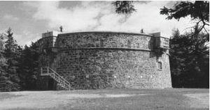 Halifax, Nova Scotia, had five towers, the oldest of which, the Prince of Wales Tower[32] located in Point Pleasant Park, is the oldest Martello-style tower in North America. It was built in 1796 and was used as a redoubt and a powder magazine. Restored, it is now a National Heritage site. The Duke of York Martello Tower[33] was built in 1798 at York Redoubt. Its lower level still stands, though it has been boarded up for conservation purposes. The Duke of Clarence Martello Tower[34] stood on the Dartmouth shore. Sherbrooke Martello Tower[35] stood opposite York Redoubt on McNabs Island; it was demolished in 1944 and replaced by a concrete lighthouse at Maughers Beach. Another Martello tower stood on Georges Island.