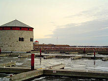 Three Martello towers were built in Scotland, the first on offshore rocks facing the Firth of Forth in 1807–09 to defend Leith Harbour. The Tally Toor now lies land-locked within the eastern breakwater.[18][19]