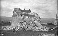 Although European in origin, a primitive form of Martello tower had existed in Punjab by the time it was conquered by the East India Company.[39] There is a Martello Tower that the Portuguese built at the southern tip of the island where the Arnala fort stands. The Portuguese are said to have built many of these towers, but Arnala's is the best surviving specimen.[40] After the Indian Rebellion of 1857, the British erected Martello towers at the British Residency in Hyderabad, which were demolished in 1954.[41] An earlier example of such is the one found in Pakur, a town in the state of Jharakhand. This tower was built in 1856 by Sir Martin with view to protect the British Raj from the Santhals. It was an important position for the British forces watching fighting the rebellion of the Santhals. This example is reported to still be in good condition, but decaying due to a lack of maintenance.
