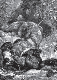Beech marten fighting a European otter, as illustrated in Brehm's Life of Animals