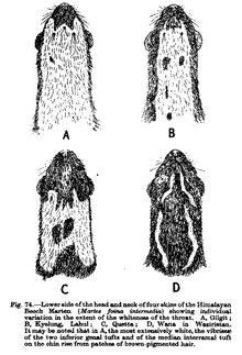 Various throat patch variations, as illustrated in Pocock, Reginald, The Fauna of British India, including Ceylon and Burma — Mammalia, 2