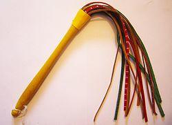 A martinet is a short, scourge-like (multi-tail) type of whip made of a wooden handle of about 25 cm (10 inches) in length and about 10 lashes of equal, relatively short length. The lashes are usually made of leather, but sometimes soap-stiffened cords are used in place of leather. It was a traditional instrument of physical punishment in France and other European countries. In French, it also refers to a similar dusting implement; the type for chastisement was also known as fouet d'enfant, meaning child's whip.