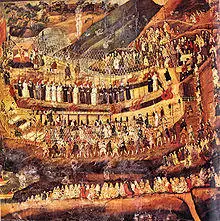 A martyr (Greek: μάρτυς, mártys, "witness"; stem μάρτυρ-, mártyr-) is someone who suffers persecution and death for advocating, renouncing, refusing to renounce, or refusing to advocate a religious belief or cause as demanded by an external party. In the martyrdom narrative of the remembering community, this refusal to comply with the presented demands results in the punishment or execution of an actor by an alleged oppressor. Accordingly, the status of the 'martyr' can be considered a posthumous title as a reward for those who are considered worthy of the concept of martyrdom by the living, regardless of any attempts by the deceased to control how they will be remembered in advance.[1] Insofar, the martyr is a relational figure of a society's boundary work that is produced by collective memory.[2] Originally applied only to those who suffered for their religious beliefs, the term has come to be used in connection with people killed for a political cause.