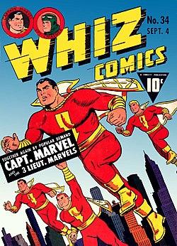 ![]() The cover of Captain Marvel Adventures #18, published in 1942 by Fawcett Comics, featuring (left to right) Captain Marvel, Mary Marvel and Captain Marvel Jr. Art by C. C. Beck. | |