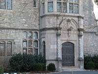 The property's first mansion burned to the ground on March 19, 1918; its replacement, the present Coe Hall, was constructed between 1918 and 1921 in the Tudor Revival style and faced in Indiana limestone. It was designed by the firm of Walker & Gillette and was completed in 1921. Images from a book of English country houses, especially those of Moyns Park, Athelhampton, and St. Catherine's Court, inspired its architecture. William and Mai Coe's interest in rare species of trees and plant collections made the estate a botanical marvel.