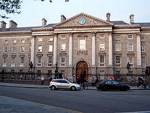 Mary Bourke attended Mount Anville Secondary School in Dublin[10] and studied law at Trinity College Dublin (where she was elected a scholar in 1965, the same year as David Norris) graduating in 1967 with first class honours.[11] An outspoken critic of some Catholic church teachings, she delivered her inaugural address as the auditor of the Dublin University Law Society in 1967 in which she advocated removing the prohibition of divorce in the Irish Constitution, eliminating the ban on the use of contraceptives, and decriminalising homosexuality and suicide. The invited respondents to her address, Professor of Jurisprudence at Oxford H. L. A. Hart and retired Supreme Court judge T. C. Kingsmill Moore, positively received her arguments.[12] She furthered her studies at the King's Inns and was awarded a fellowship to attend Harvard Law School, receiving an LL.M in 1968.[13][14] She was called to the Irish Bar in 1967 and while still in her twenties was appointed Reid Professor of Law in the college.[15] A subsequent holder of that title was her successor as Irish President, Mary McAleese. She became a member of the Bar of England and Wales in 1973 and a senior counsel in Ireland in 1980.[13]