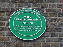 Wollstonecraft had envisioned living in a female utopia with Blood; they made plans to rent rooms together and support each other emotionally and financially, but this dream collapsed under economic realities. In order to make a living, Wollstonecraft, her sisters and Blood set up a school together in Newington Green, a Dissenting community. Blood soon became engaged and, after her marriage, moved to Lisbon Portugal with her husband, Hugh Skeys, in hopes that it would improve her health which had always been precarious.[12] Despite the change of surroundings Blood's health further deteriorated when she became pregnant, and in 1785 Wollstonecraft left the school and followed Blood to nurse her, but to no avail.[13] Moreover, her abandonment of the school led to its failure.[14] Blood's death devastated Wollstonecraft and was part of the inspiration for her first novel, Mary: A Fiction (1788).[15]