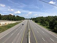 MD 201 was extended north along Edmonston Road through Greenbelt to MD 212 in Beltsville in 1962.[21] The following year, the divided highway was extended north through the interchange with the Capital Beltway to relocated Crescent Road in Greenbelt.[22][23] MD 201's diamond interchange with MD 193 was built in 1988.[24][25] The MDSHA plans to extend MD 201 north as a multi-lane divided highway north from MD 212 in Beltsville to I-95 south of Laurel. The highway would split north from Edmonston Road north of Odell Road, cross over CSX's Capital Subdivision and US 1, and follow an existing right-of-way corridor to the intersection of Virginia Manor Road and Ritz Way. MD 201 would continue along Virginia Manor Road to relocated Contee Road, which will have an interchange with I-95.[26]