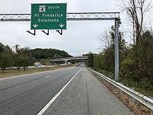 Another future project along MD 4 involves upgrading the highway between MD 223 in Melwood and the Capital Beltway in Forestville to a freeway featuring interchanges at the Suitland Parkway, Dower House Road, and Westphalia Road.[28] There is also a planning study underway to explore building a new bridge adjacent to the Governor Thomas Johnson Bridge and expanding MD 4 to a four-lane divided highway between MD 2 at Solomons and MD 235 in California.[29]