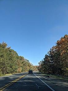 MD 4 has several names over its course. The highway is named St. Andrew's Church Road and Patuxent Beach Road west and east of MD 235, respectively, in St. Mary's County. The highway follows Solomons Island Road throughout its concurrency with MD 2, which at 27.40 miles (44.10 km) is the longest state-numbered-highway concurrency in Maryland. MD 4 is known as Southern Maryland Boulevard from MD 2 in Sunderland to MD 258 in Bristol. From Bristol to MD 717 in Upper Marlboro, the route is named Stephanie Roper Highway. MD 4 is named Pennsylvania Avenue from MD 717 to the same-named avenue at the District of Columbia boundary.[1][2] Stephanie Roper Highway commemorates the victim of a 1982 murder. The subsequent legal process spurred the victims' rights movement and led to the 2004 federal Crime Victims' Rights Act. The Roper name was added to the highway by an October 23, 2012, proclamation by then-Governor Martin O'Malley.[3][4] MD 4 is part of the National Highway System between MD 235 in California and its northern terminus.[5]