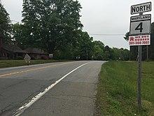 Pennsylvania Avenue was extended east out of D.C. to Dower House Road as a controlled access four-lane divided highway in 1959 and 1960 and was designated MD 4.[13][10][14] Marlboro Pike was assigned MD 4 Business, a designation that was gone by 1970.[14][15] Also in 1960, the MD 416 designation was extended south along MD 2 to Solomons.[14] By 1970, the MD 4 freeway between Meadows and Hills Bridge was complete.[15] In addition, MD 4 replaced MD 416 down Southern Maryland Boulevard and Solomons Island Road to Solomons, and the divided highway was extended south from Hills Bridge to MD 263.[10][15] In turn, MD 408 was placed on what was previously MD 4 between Upper Marlboro and Lothian.[15] The western extent of MD 408 was rolled back to Waysons Corner by 1980.[16] MD 2-4 was also expanded to a divided highway south to Port Republic by 1980.[16]