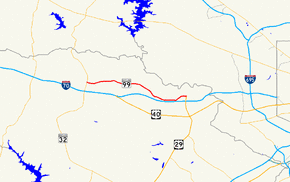 In 1956, St. Johns Lane and Old Frederick Road east of Rogers Avenue were removed from the state highway system, resulting in the elimination of MD 100 and MD 105. MD 99 was extended east along Old Frederick Road and south along Rogers Avenue to Frederick Road.[11] Rogers Avenue had been reconstructed and widened to 24 feet (7.3 m) starting in 1953, shortly before it became part of MD 99.[12] I-70 north of Ellicott City and US 29 from US 40 to MD 99 were constructed between 1964 and 1967.[13][14] MD 99 was relocated between US 29 and south of I-70 around 1966 when the state highway's bridge over I-70 was built; two sections of old alignment became segments of MD 985.[1][14][15] MD 99's eastern terminus was rolled back from Frederick Road to US 40 in 1978 and from US 40 to its present terminus at US 29 in 1989.[16][17]