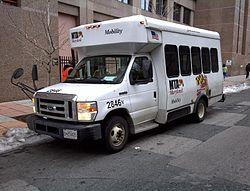 The MTA began offering paratransit service for persons with disabilities in 1978 when it took over a mobility service in Baltimore previously operated by Lutheran Family Services.[15] This mobility service is a "non-fixed route" service and consists of a fleet of specially converted Ford E-Series vans and Ford Crown Victorias. Some service is contracted out to MV Transportation and Transdev, but all vehicles are owned by MTA.