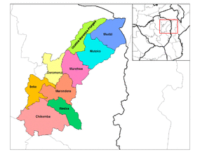 - "Base map of Mashonaland East Province" (PDF). United Nations Office for the Coordination of Humanitarian Affairs (OCHA). Archived from the original (PDF) on 19 April 2014.