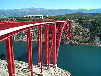 Maslenica was damaged under the Croatian War of Independence in the 1990s.[1] Most notably, a heavily traveled bridge, the Maslenica Bridge was destroyed. In 2006, the bridge was rebuilt on the same spot and similar appearance. In the meantime, an additional bridge, also known as Maslenica Bridge had been built slightly north, on the A1 motorway.[2]