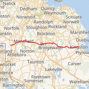 | Plymouth | West Bridgewater | 16.0 | 25.7 | Exits 28A-B on Route 24 | |