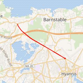 | Hyannis | 0.00 | 0.00 | Southern terminus; Barnstable Rotary | ||