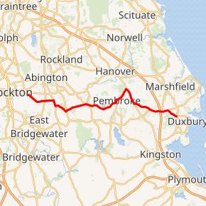 Route 14 is a 18.46-mile-long (29.71 km) state highway in southeastern Massachusetts. It runs from Route 27 in Brockton east to Route 3A in Duxbury, near the coastline.