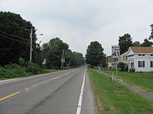 The three roads head through the center of town concurrently, just east of the Housatonic River, before Route 41 leaves the concurrency just before the other two routes cross the river. Route 41 heads relatively northward into West Stockbridge, where it meets Exit 1 of the Massachusetts Turnpike. The exit is only partial; it has a westbound exit and eastbound entrance only, just west of the final toll booth on the Pike. Directly north of the Pike, Route 41 begins a short, 0.5 miles (0.80 km) concurrency with Route 102, passing Shaker Mill Pond before the routes split, with Route 41 heading northward into the town of Richmond. In Richmond, it meets the end of Route 295, which leads shortly into New York. Route 41 ends just north of the Richmond-Pittsfield line at U.S. Route 20, just east of the Hancock Shaker Village in Hancock and southwest of Pittsfield's airport and city center.