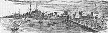 Massawa was originally a small seaside village, lying in lands coextensive with the Kingdom of Axum—also known as Kingdom of Zula in antiquity—and overshadowed by the nearby port of Adulis about 50 kilometres (31 mi) to the south.[5] Massawa has been ruled or occupied by a succession of polities during its history, including the Aksumite Empire, Abyssinia , Italian Eritrea and the Ottoman Empire. Following the fall of Axum in the 8th century, the area around Massawa and the town itself fell under the occupation of the Umayyad Caliphate from 702 to 750 CE. The Beja people would also come to rule within Massawa during the Bajag Kingdom of Eritrea from the year 740 to the 14th century. Massawa was situated between the sultanates of Qata, Baqulin, and Dahlak. Midri-Bahri, an Eritrean kingdom (14th–19th centuries), gained leverage at various times and ruled over Massawa. The port city would also come under control of the Balaw people (people of Agaw descent), during the Balaw Kingdom of Eritrea (12th–15th centuries). At this time, the Sheikh Hanafi Mosque, one of the country's oldest mosques, was built on Massawa Island. The city reportedly has the oldest mosque in Africa, that is the Mosque of the Companions. It was reportedly built by companions of Muhammad who escaped persecution by Meccans.[6]
