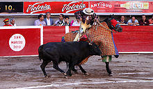 The danger associated with bullfighting added to the matador's performance; they are regularly injured by bulls and, concurrently, 533 professional bullfighters have been killed in the arena since 1700.[6] Spanish bullfighter Manolete died from an injury in 1947. Matador Iván Fandiño died on 17 June 2017 in Aire-sur-l'Adour, France from a similar bullfighting injury.[7] This hazard is said to be central to the nature and appeal of bullfighting.