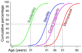 - ^ a b c Schmidt, L.; Sobotka, T.; Bentzen, J. G.; Nyboe Andersen, A.; ESHRE Reproduction and Society Task Force (1 January 2012). "Demographic and medical consequences of the postponement of parenthood". Human Reproduction Update. 18 (1): 29–43. doi:10.1093/humupd/dmr040. PMID 21989171.