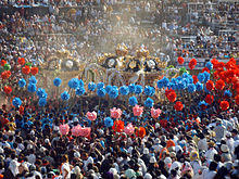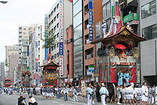 Notable matsuri often feature processions which may include elaborate floats. Preparation for these processions is usually organized at the level of neighborhoods, or machi. Prior to these, the local kami may be ritually installed in mikoshi and paraded through the streets.