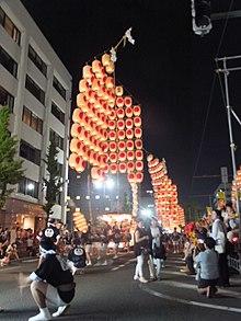 This festival is held annually and features colorful lantern floats called nebuta which are pulled through the streets of Central Aomori. This festival is held from about August 2–7 every year. This event attracts millions of visitors. During this festival, 20 large nebuta floats are paraded through the streets near Aomori JR rail station. These floats are constructed of wooden bases and metal frames. Japanese papers, called washi, are painted onto the frames. These amazing floats are finished off with the historical figures or kabuki being painted on the paper. These floats can take up to a year to complete. There is a dance portion of this festival. There are haneto dancers and they wear special costumes for this dance. Everyone is welcome to purchase their own haneto costume that they may too join in on the fun (Mishima, Aomori Nebuta Festival).