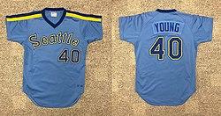 Young was born in Pasadena, California in 1958. He attended the University of California Los Angeles. While at UCLA, he was drafted by the Seattle Mariners, in the second round of the 1980 amateur draft. He made his major league debut three years later with the Mariners, eventually winning 11 games over 2031/3 innings, with a 3.27 earned run average, good enough to rank in the top ten for ERA that season.[1] He represented the Mariners in the 1983 Major League Baseball All-Star Game, where he pitched a scoreless 8th inning facing Johnny Bench, Darrell Evans and Pedro Guerrero.