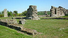 The ruins of the priory sit next to the River Idle, east of the village of Mattersey. The ruins consist mainly of foundations but also include the remains of the 12th-century priory church, three arches from the canon's refectory, the foundations of the 14th-century monastic kitchens and the remains of a 15th-century tower. The foundations of the monastic service buildings (barns, bakehouse, infirmary etc.) are thought to remain under the area currently occupied by the farm buildings and yards of the adjacent Abbey Farm.[3]