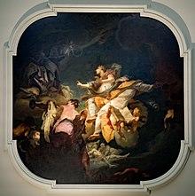 For many years the growth of Bortoloni's reputation was constrained by two factors. First, his work was heavily centered on frescos (that is, wall paintings created in wet plaster), which generally must be viewed on-site and are often located in places of restricted accessibility. Second, some of his most important work became, through the years, anonymous or mis-attributed to others, including his better-known rival, Giovanni Battista Tiepolo, who was born in the same year.[3] Since 1950, however, appreciation of Bortoloni's work has been revived by new scholarly discoveries and several exhibitions with informative catalogs.[4]
