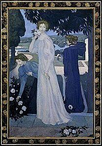 The next major event in the life of Denis was his meeting with Marthe Meurier in October 1890. From June 1891 they had a long romance, meticulously documented in his journal, and were married on 12 June 1893. She became an important part of his art, appearing in many pictures and also in decorative works, such painted fans, often as an idealized figure representing purity and love.[14]