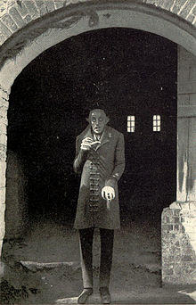 For three years between 1919 and 1922, Schreck appeared at the Munich Kammerspiele,[5] including a role in the expressionist production of Bertolt Brecht's début, Trommeln in der Nacht (Drums in the Night) in which he played the "freakshow landlord" Glubb.[6] During this time, he also worked on his first film The Mayor of Zalamea, adapted from a six-act play, for Decla Bioscop.[5] In 1921, he was hired by Prana Film for its first and only production, Nosferatu (1922), an unlicensed adaptation of Bram Stoker's novel Dracula. The company declared itself bankrupt after the film was released to avoid paying copyright infringement costs to the author's widow, Florence Stoker.[5] Schreck portrayed Count Orlok, a character analogous to Count Dracula.[5]