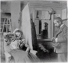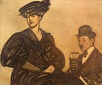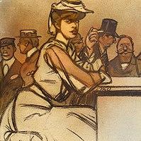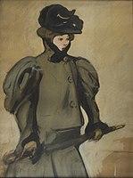 Dethomas engaged models from both within his social circle, as well as otherwise unremarkable characters from urban life, searching out peculiarities of appearance that betrayed the social facades of the fin de siècle.[21] Having cut ties with his bourgeois pretensions during an 1891 move to Montmartre, Dethomas followed in the footsteps of his mentors, hungry to find authentic expression of the human condition amongst the daily struggles of the urban poor.[22] "His characters are all scoundrels", joked Degas.[23] Two such 'scoundrels' would go on to lead remarkable lives, in no small part due to their association with Dethomas. Then artist's model Suzanne Desprès became romantically involved with Dethomas in June, 1894, and continued to feature prominently in his art for some years, later becoming a famous actress and wife of theater director Lugné-Poe.[24] Prior to meeting Picasso in 1904, Fernande Olivier would also model for Dethomas with some regularity, her memoirs painting a vivid picture of her time in Dethomas' studio: