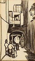 He realised vigorous drawings, and some few oil paintings, showing portraits, cafe scenes, and urban landscapes of Italy and Spain. He primarily worked with broad strokes in conté, graphite, charcoal and pastel, often enhanced by watercolour and the masterful use of the spatter brush, with drizzles and sprays of gouache reminiscent of Lautrec lithographs.[18] From the late 1890s, he drew inspiration from Japanese prints - said to have been introduced to him by Toulouse-Lautrec - and developed a bold xylographic style which lent itself to woodcut reproduction.[19]