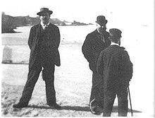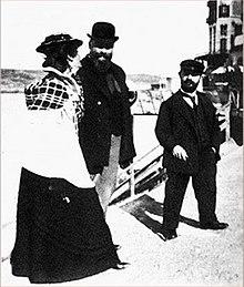 Dethomas and Toulouse-Lautrec's adventures together were not limited to the streets of Paris. If Dethomas' close friend Gabrielle Dorziat is to be believed, during the month of October, 1894, Dethomas and Toulouse-Lautrec travelled to Spain together, stopping at Madrid, Cordoue and Seville.[55] In subsequent years their travels continued, visiting exhibitions, museums and mutual friends or exploring towns such as Granville, Arromanches and Dinard, at which Dethomas had made use of a summerhouse.[56] During the summer of 1895, they journeyed to the coast of Normandy together.[57] From photographs taken by Dethomas at Saint-Malo with the Natansons during one such trip, he later modelled two portraits of Toulouse-Lautrec, both of which are held at the Musée Toulouse-Lautrec.[58]