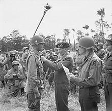 Having been brought up to strength, Taylor led the 101st in Operation Market Garden in the Netherlands in September 1944. He was not present for the division's action during the Siege of Bastogne as part of the Battle of the Bulge since he was attending a staff conference in the United States. The Divisional Artillery commander, Brigadier General Anthony McAuliffe, exercised command in his absence. Taylor called the defense of Bastogne the 101st Airborne Division's "finest hour" of the war and stated that his absence was one of his greatest disappointments of the war.[3] After Bastogne, Taylor's 101st saw little further service in the war and was sent to the United States in late 1945, where it was deactivated in November.