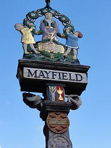 The village name derives from both "Maghefeld"[7] (a field where mayweed grows) and "maid's field"–the village sign depicts a maid.[8] A number of 15th century emigrants to the new world had the surname May rather than Maid, which indicates the Middle English "mayde" in signage began as a rebus. Mayfield used to be a part of the manor of Malling, to the north west of Lewes, which belonged to the Kings of Wessex. Between 823 and 836 CE, King Egbert of Wessex and his son Æthelwulf gave it to Canterbury Cathedral: it became an Archbishop's 'peculiar' in the Diocese of Canterbury, and one of the Archbishop's palaces was built here. It was transferred to the Diocese of Chichester in 1846.